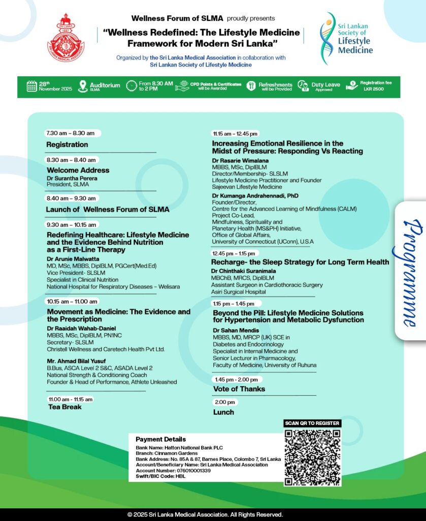 Organised by the Sri Lanka Medical Association(SLMA) in collaboration with the Sri Lankan Society of Lifestyle Medicine(SLSLM)